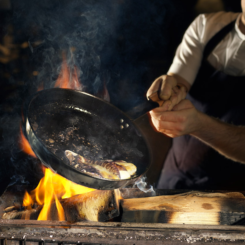 Pre-seasoned carbon steel frying pan